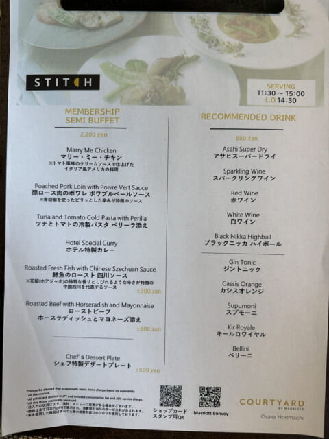 本日のランチは堺筋本町にあるコートヤード・バイ・マリオット大阪本町2階にあるレストラン「STITCH(ステッチ)コートヤード・バイ・マリオット大阪本町」に行きました。