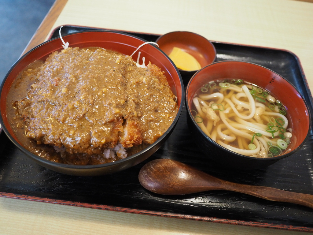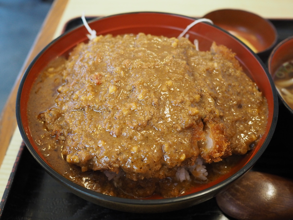 大きな丼に巨大なとんかつが乗って、カレーもたっぷりかけられて凄いボリュームです!