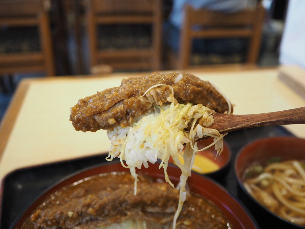 カレーは旨みが濃厚でどちらかと言えばスパイスカレー系で、とんかつとご飯との相性が抜群です!