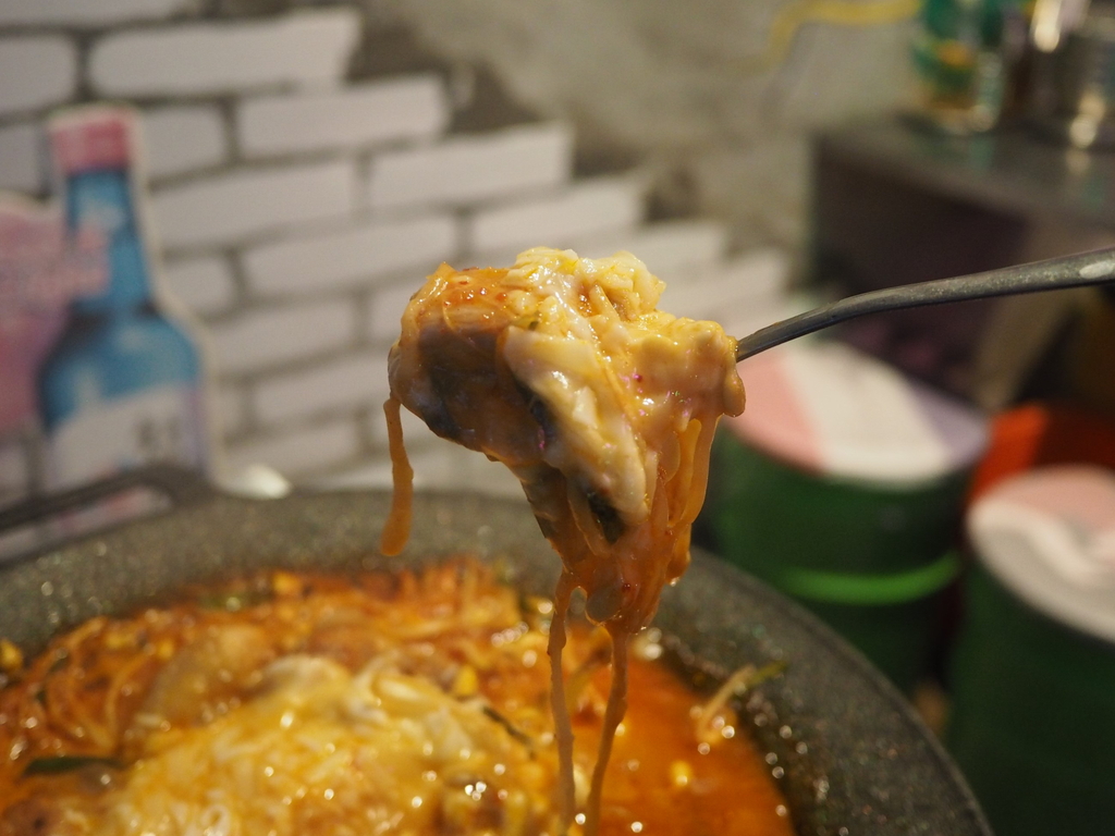 プリプリの鶏肉にたっぷりのチーズと甘辛いスープが絡んで旨い!