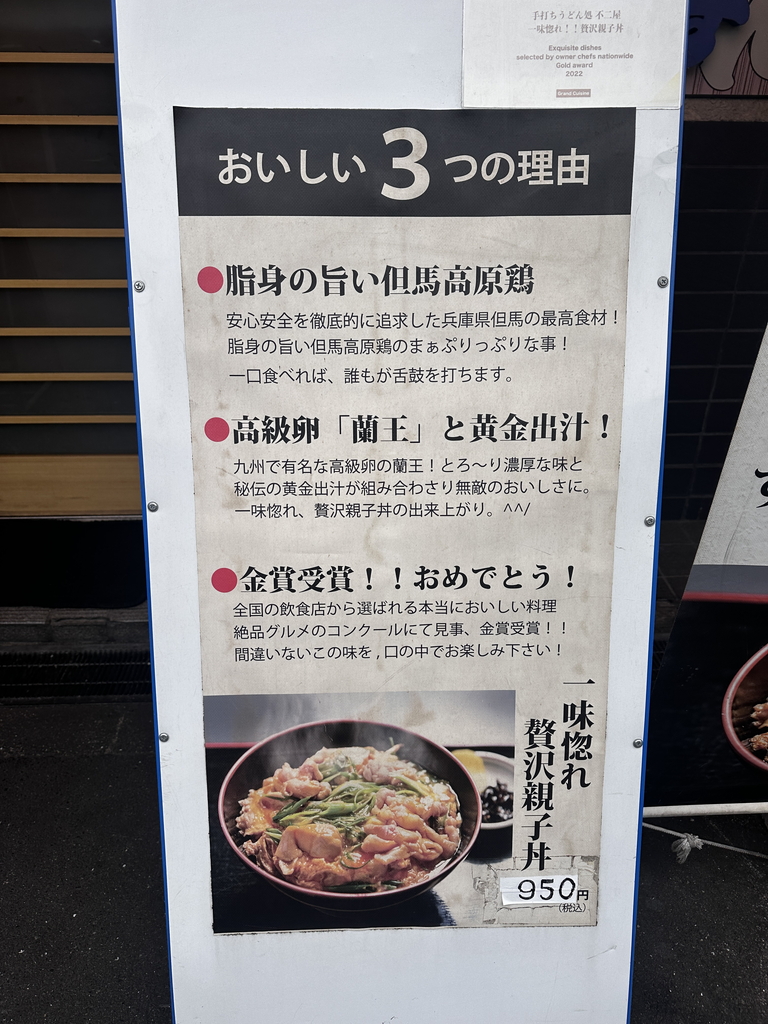 後述しますが、それぞれ権威あるコンテストで金賞を受賞したカレーうどんと金賞を受賞した親子丼が一度に食べられる、夢のセットです!