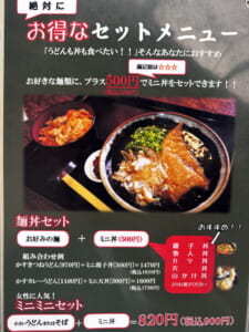かすカレーうどん」(1,200円税込)、「ミニ親子丼」(+550円税込)