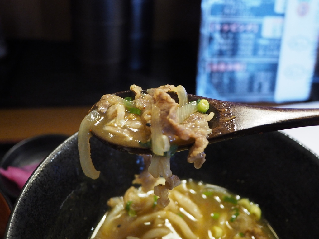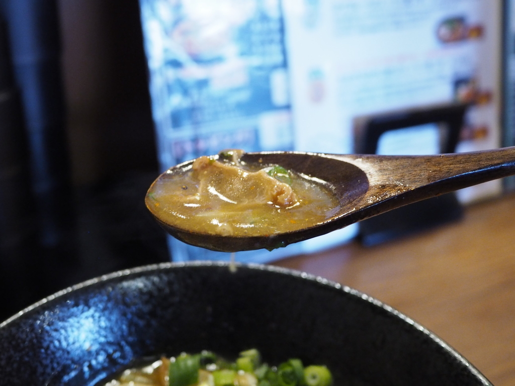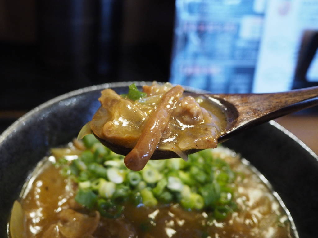 魚介の旨みが凝縮した思わず唸ってしまうほど美味しいカレー出汁に、油かすの香ばしい甘みが一体となってめちゃくちゃ旨い!