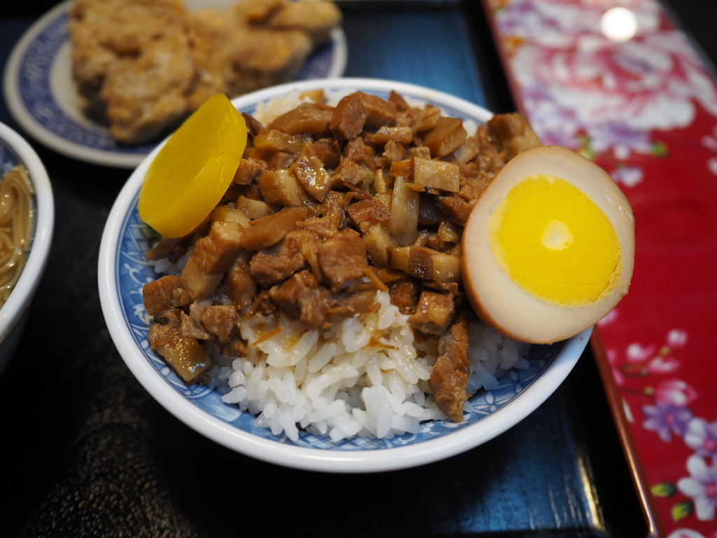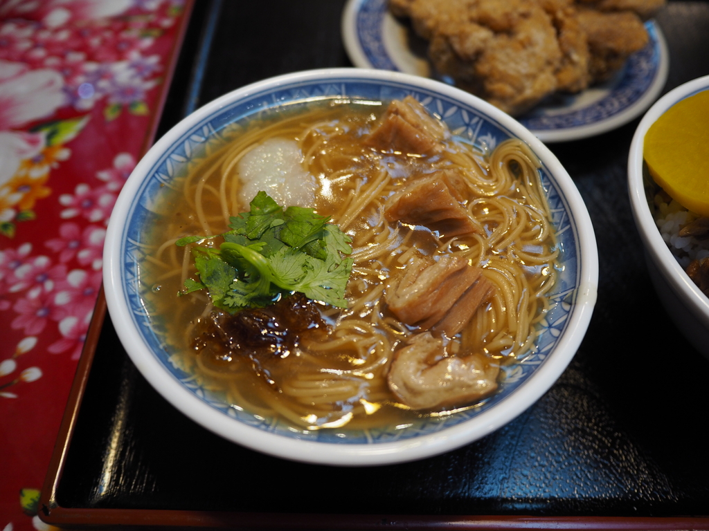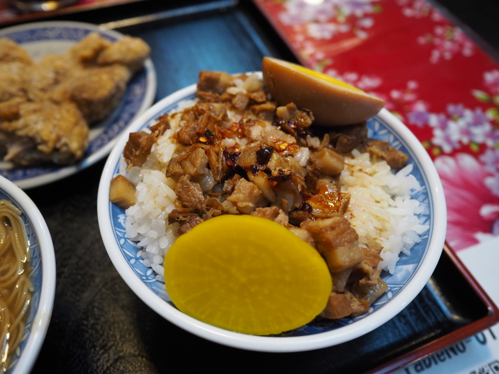 台湾を代表する料理、大鶏排(台湾唐揚げ)、大腸麺線(モツ入り台湾そば)、魯肉飯(ルーローハン)のセットです!