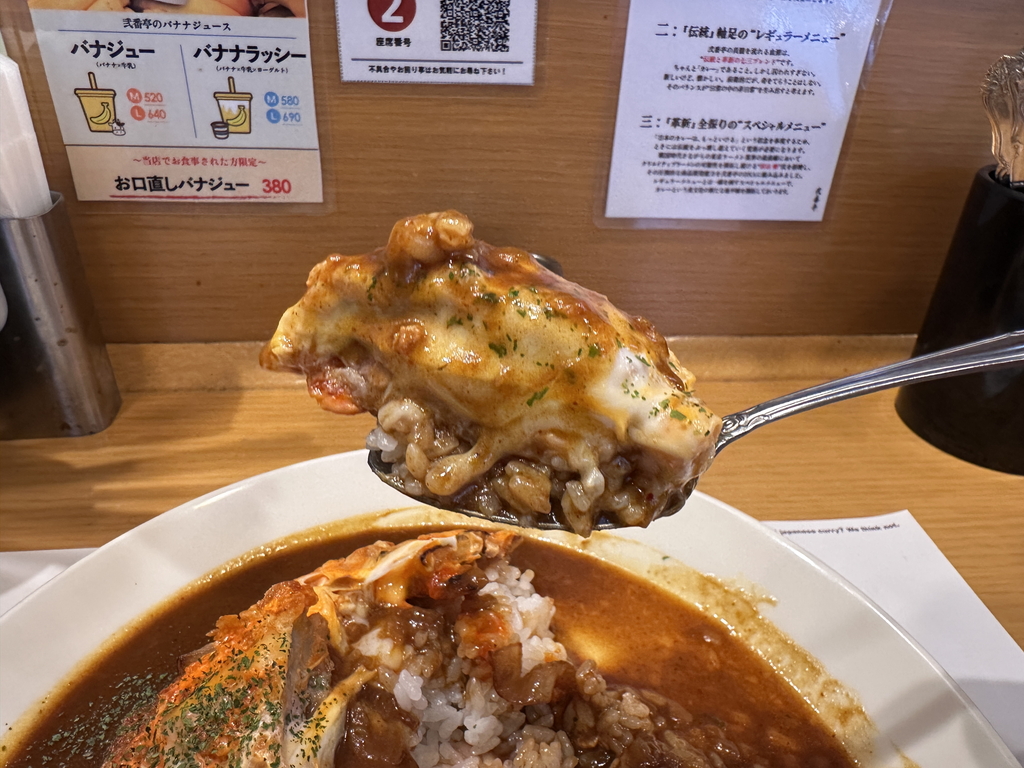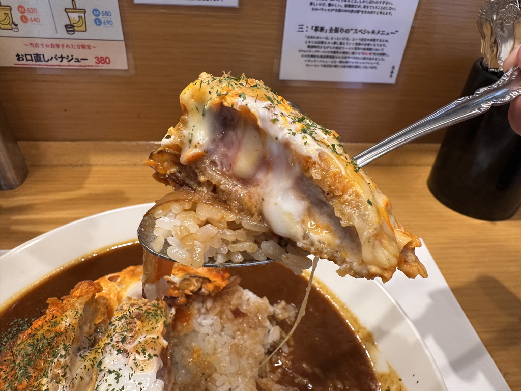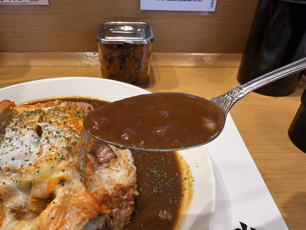 カツ丼の濃さがルーによって緩和され、さらにルーはより一層コクが出て絶妙な味わいになってめちゃくちゃ旨い!