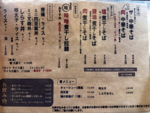 数種類のラーメンとサイドメニューは全てがとても良心的な価格設定です!
