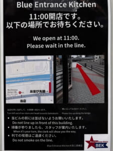 お店はビルの4階にあり、エレベーターで4階で降りたらすぐに店舗内なので並ぶ場所が無いので、お店から少し離れた場所で並ぶのがルールです。