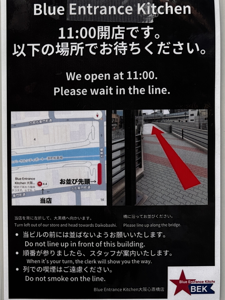 本日のランチは西心斎橋にあるタコスのお店「Blue Entrance Kitchen 大阪心斎橋店」に行きました。