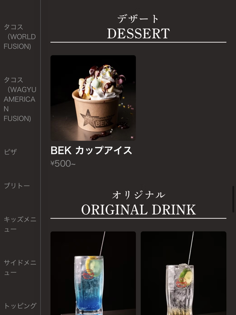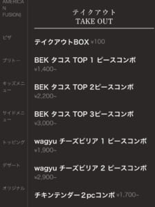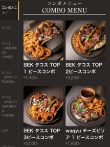 「EBKタコスTOP3コンボ」(3,000円税込)、「ディップソース」(150円税込)、「サワークリーム」(200円税込)、「コロナ・エキストラ」(800円税込)