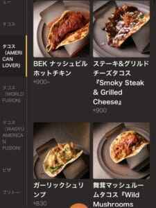 ステーキ&グリルドチーズタコス・・・