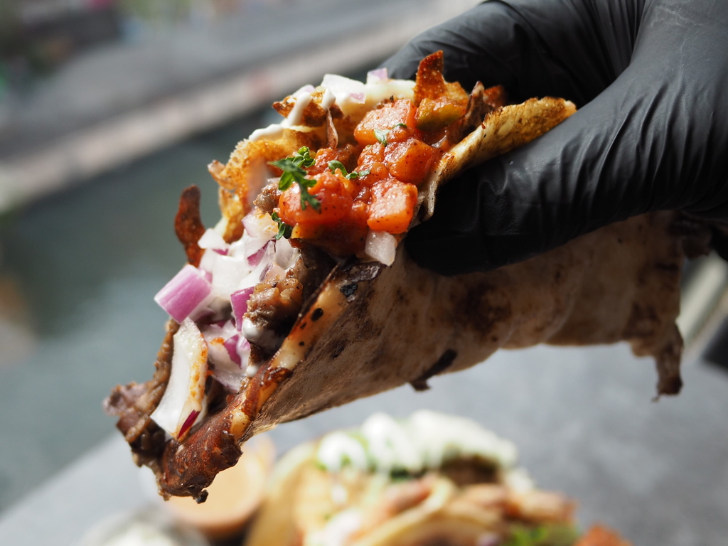 タコスはモチっとした食感でチーズが絡みまくってこれだけで激ウマなのに、柔らかくてジューシーなステーキと野菜が一体となってめちゃくちゃ旨い!