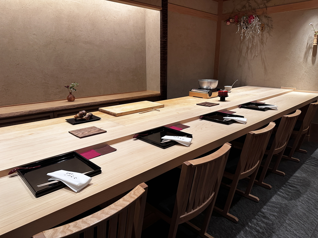 高級感溢れるゆったりとしたカウンター8席の店内。