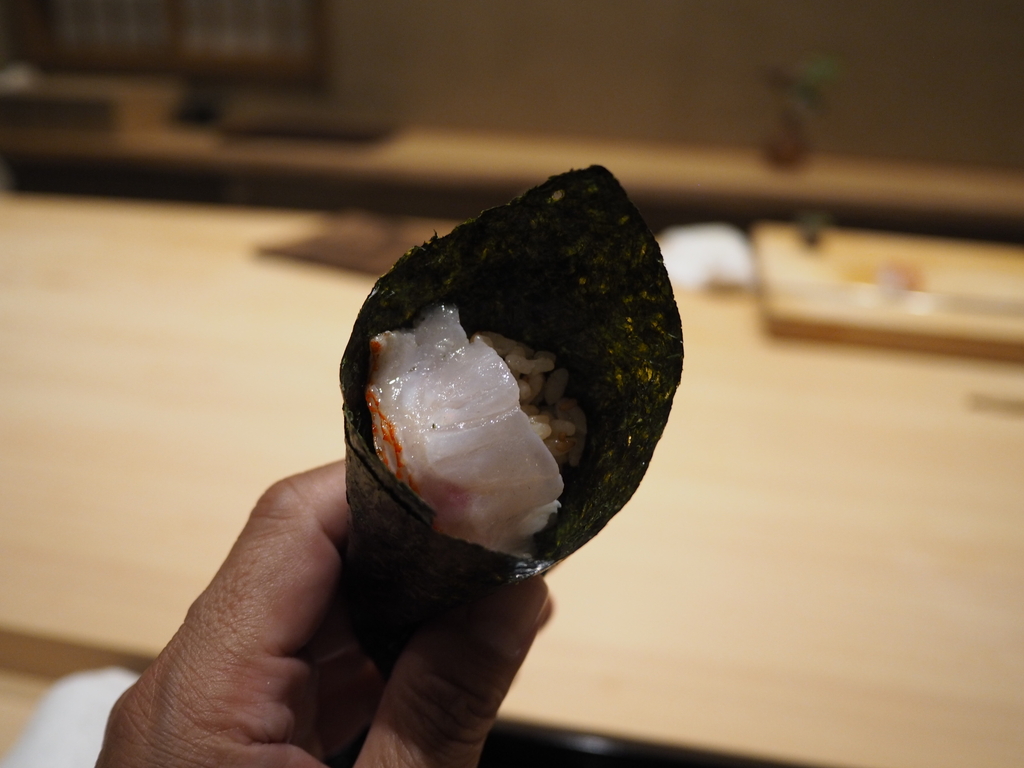 北海道ばふん雲丹 キンキの炙りの手巻き寿司