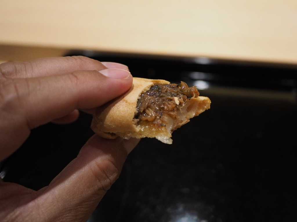 最中の皮にすっぽんのしぐれ煮とお餅がサンドされています!
