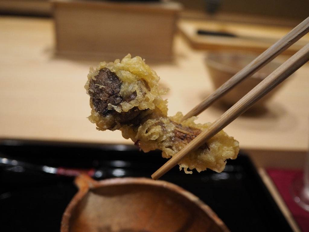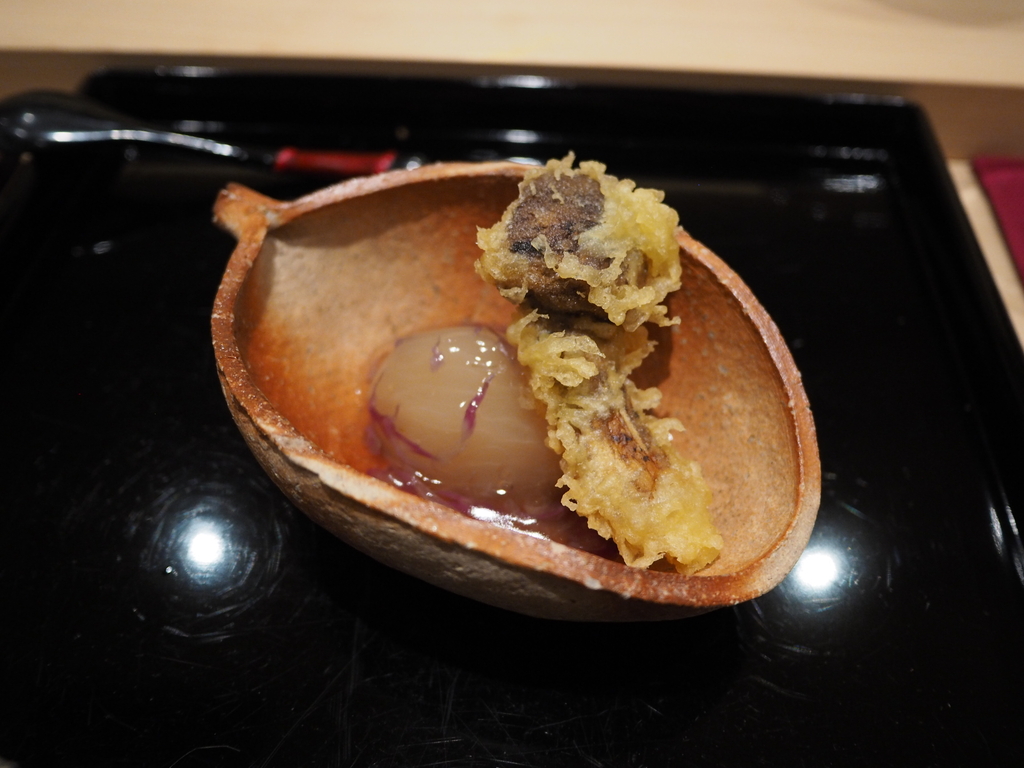 松茸天麩羅 小蕪菊花餡