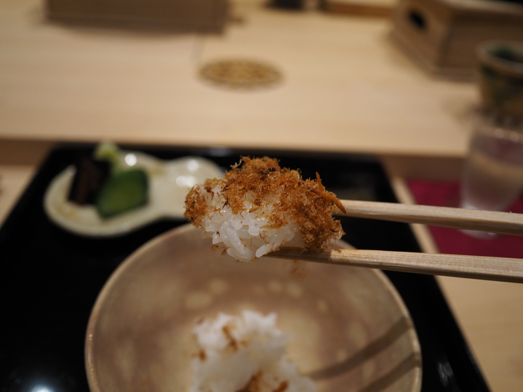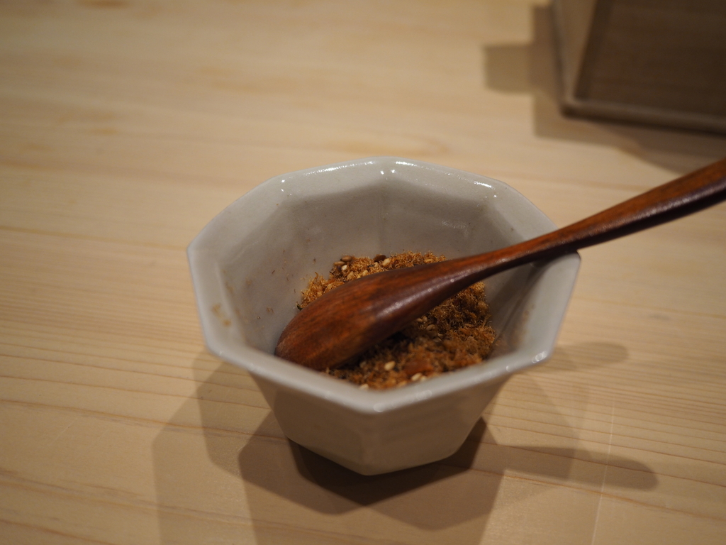自家製の魚のふりかけをかけて・・・