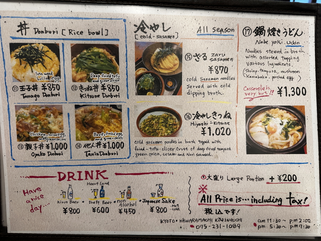 本日のランチは京都市上京区にあるうどん屋さん「自家製麺 天狗」に行きました。