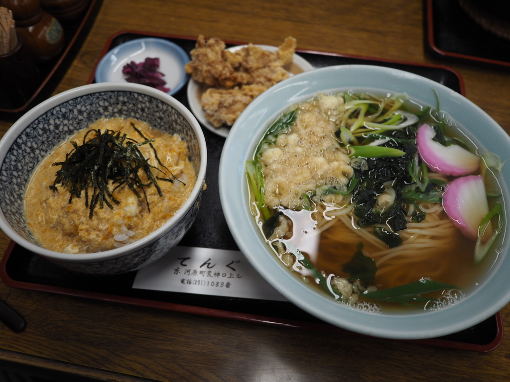 「鶏の唐揚げ 温かいささめん 小玉子丼付」(1,400円税込)