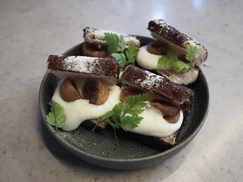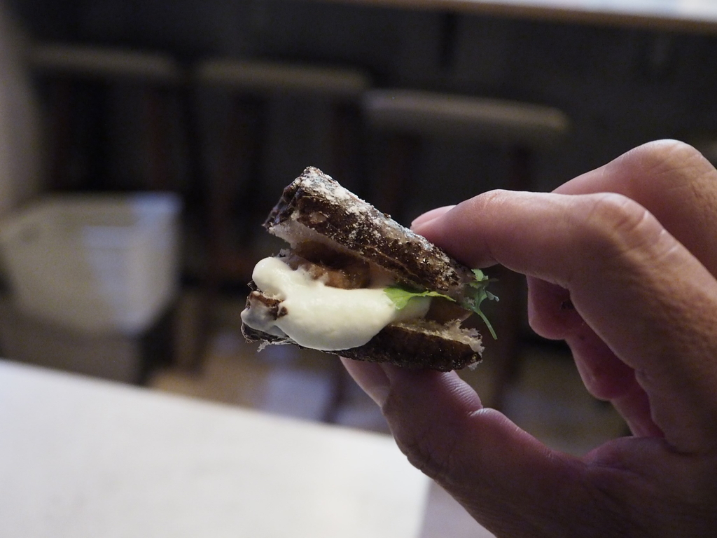 サクッと軽い黒糖味の麩菓子とマスカルポーネクリームの旨みとドライ無花果の甘みが一体となってめちゃくちゃ旨い!