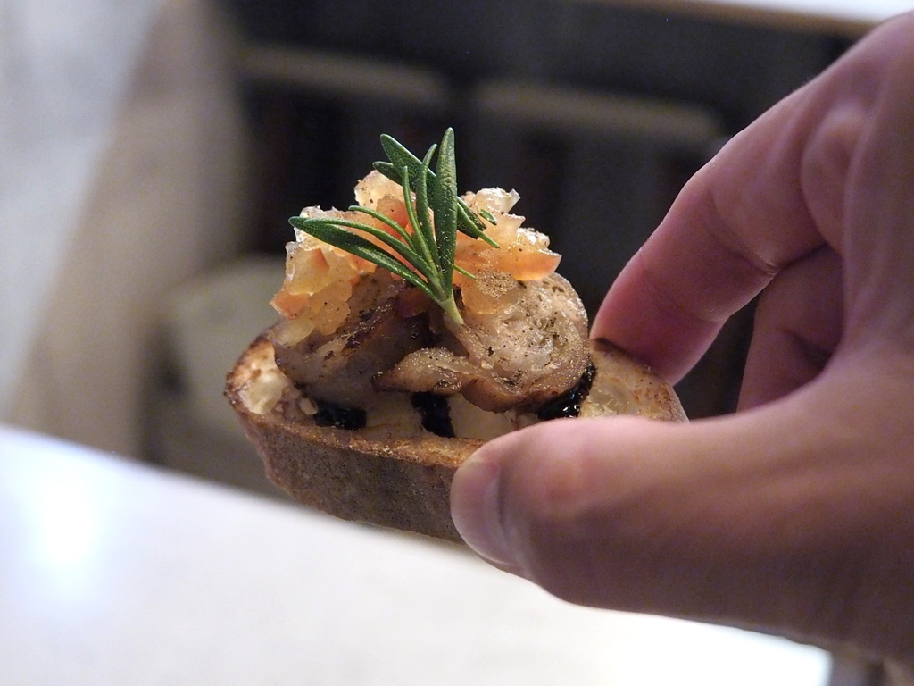 ブルスケッタは全部で6種類あり、通常は同じものが2個なのですが、全てが同じお値段なので、1個ずつ6種類全部盛り付けていただきました(^^