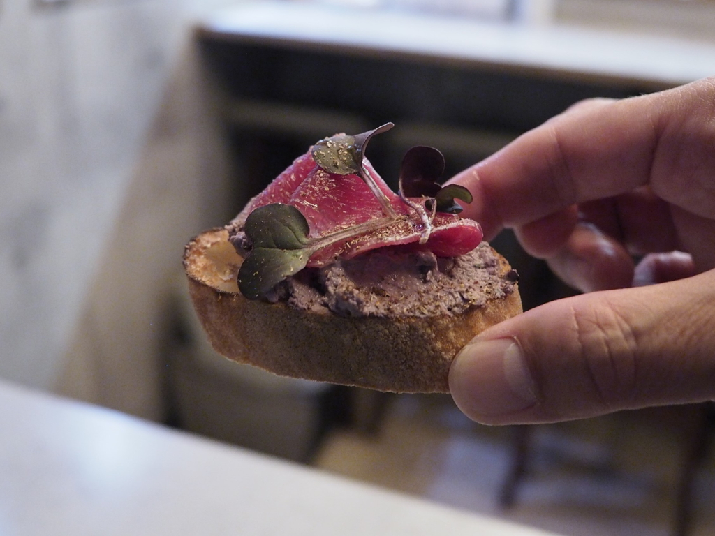 ・鴨の生ハム ブルーベリーのパテと花山椒