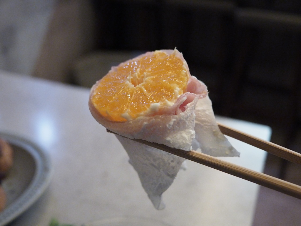 みかんの甘みと生ハムの塩気が合わさって甘じょっぱくてめちゃくちゃ美味しいです!