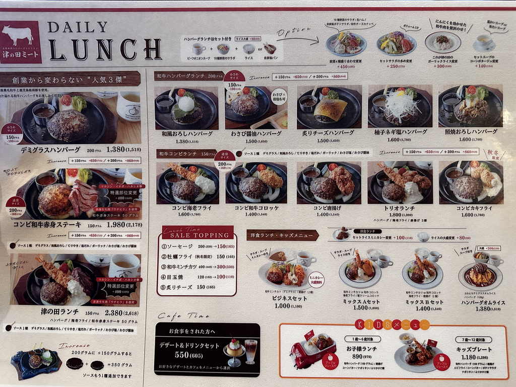 本日のランチは茨木市にあるハンバーグのお店「津の田ミート 茨木店」に行きました。