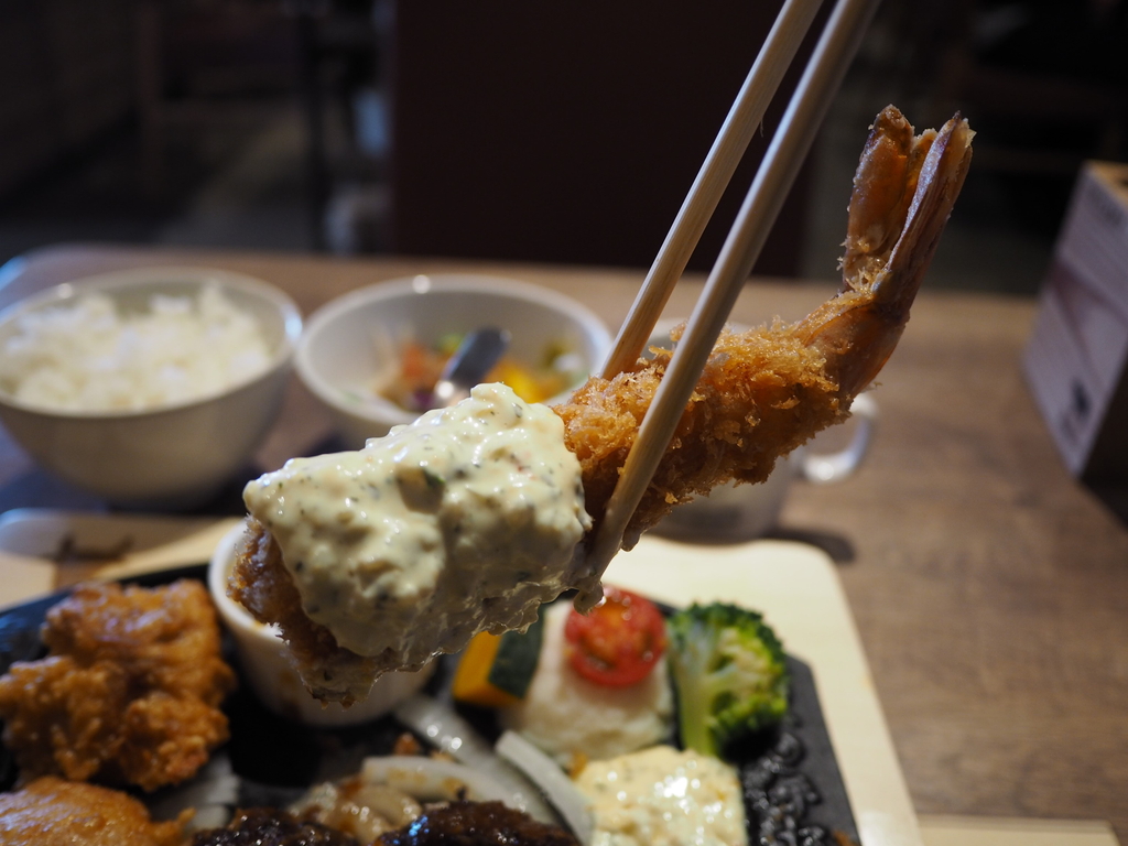 極太のエビフライはプリプリで、タルタルソースが絶妙にマッチしてめちゃくちゃ旨い!