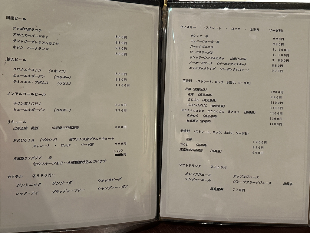 営業時間 : 12:00~14:00(L.O13:30)、18:00~2:00(L.O1:00)、土曜日18:00~23:00(L.O22:30)