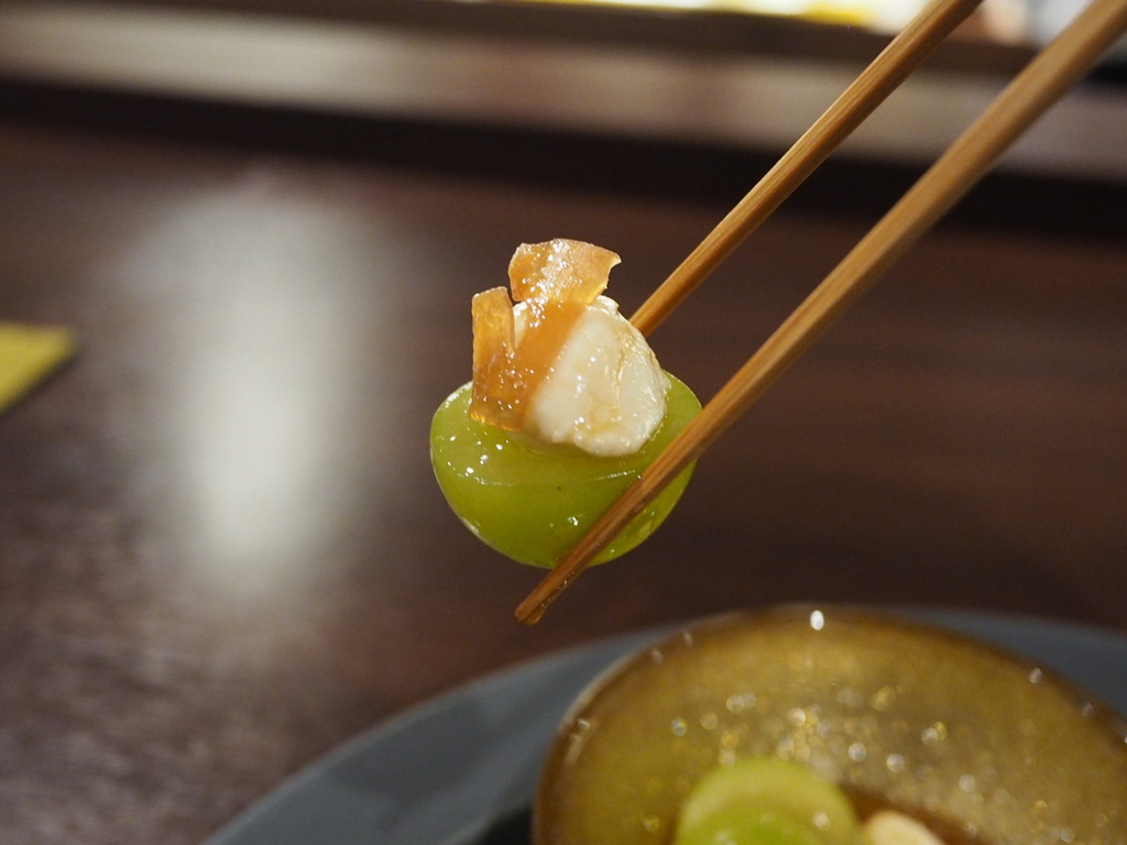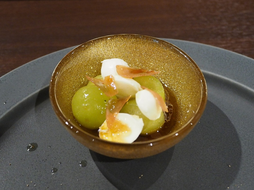 マスカットの甘みにモッツアレラチーズと生ハムの旨みが一体となってめちゃくちゃ美味しいです!