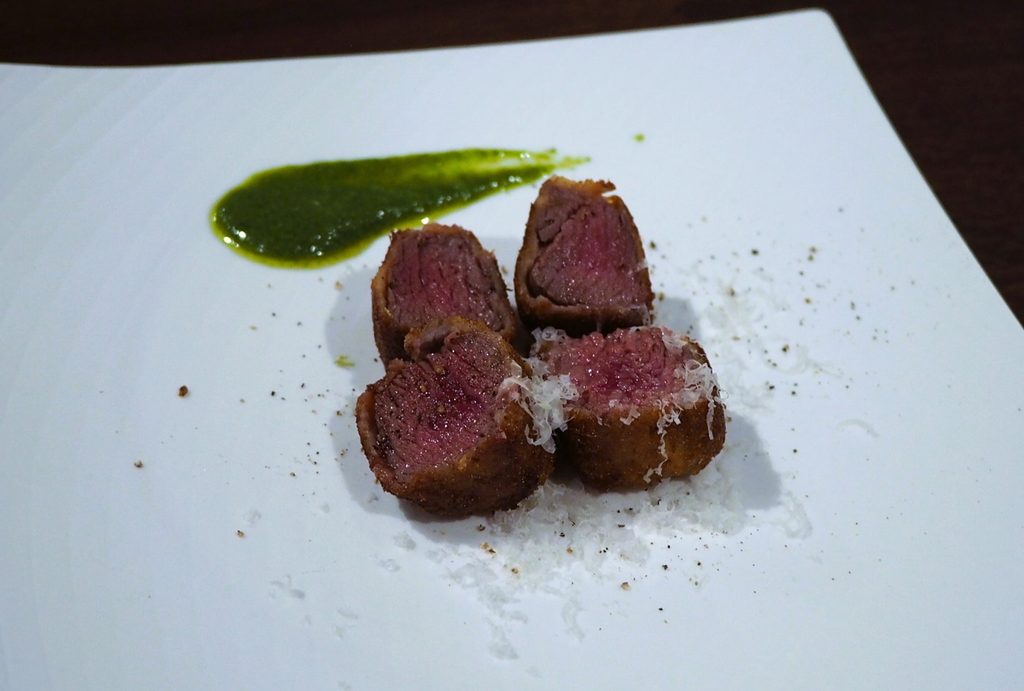 「国産ダチョウのフィレ肉の一口カツレツ」