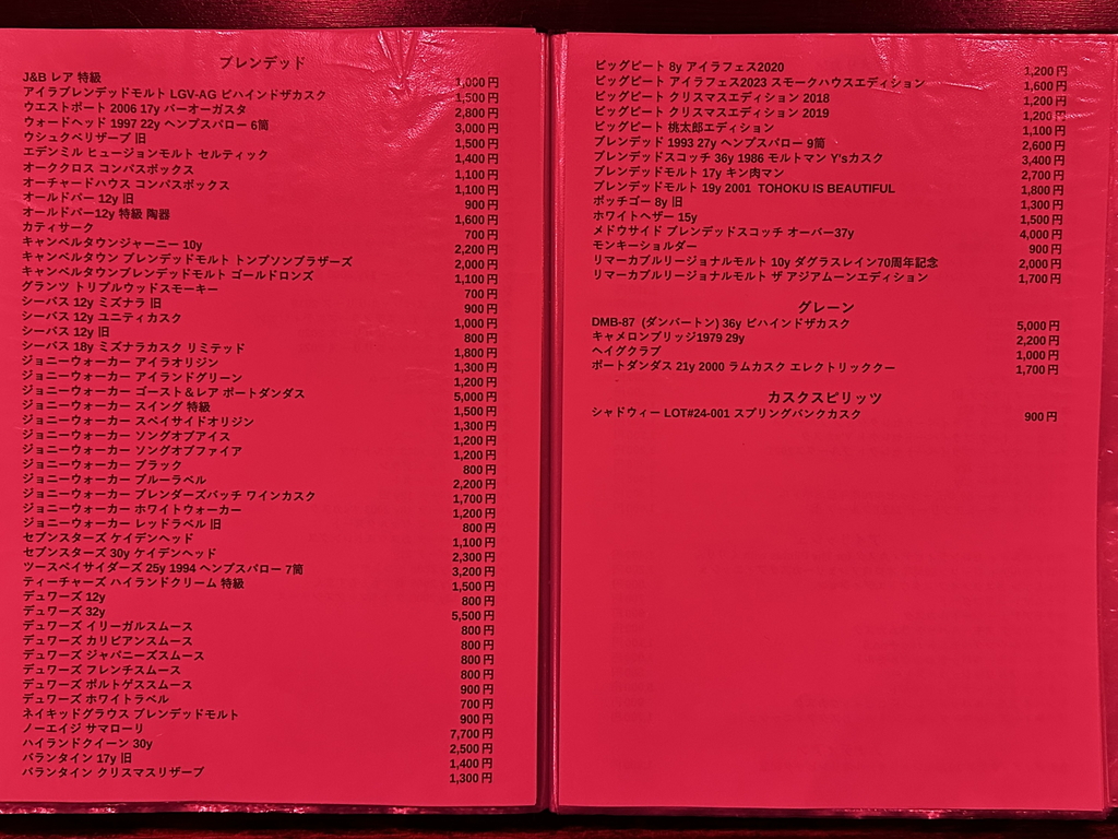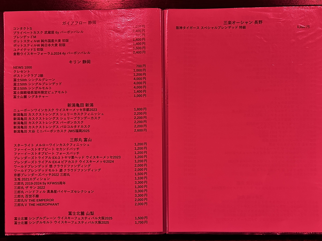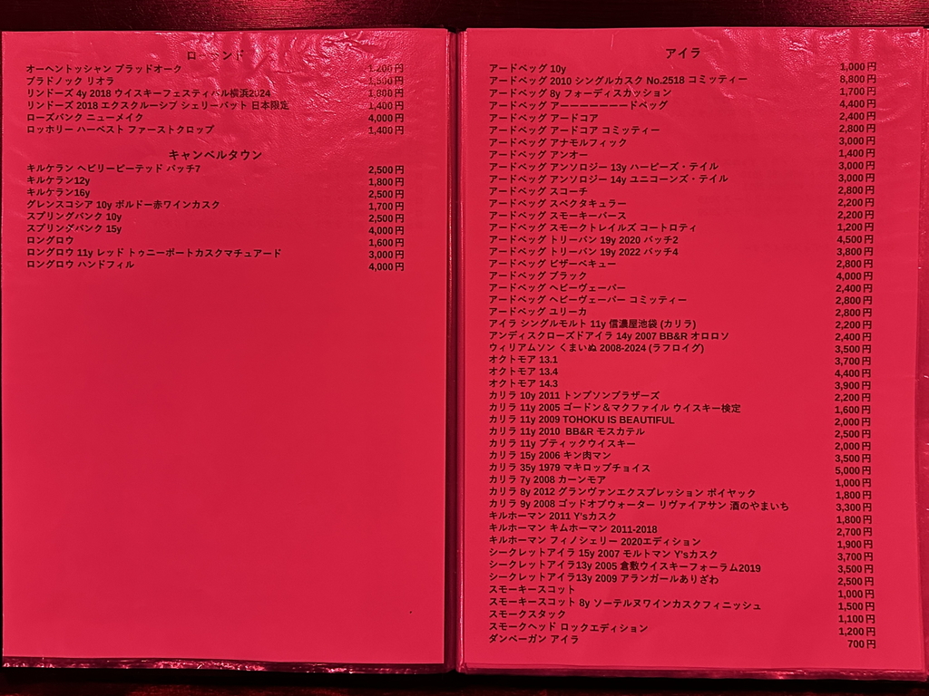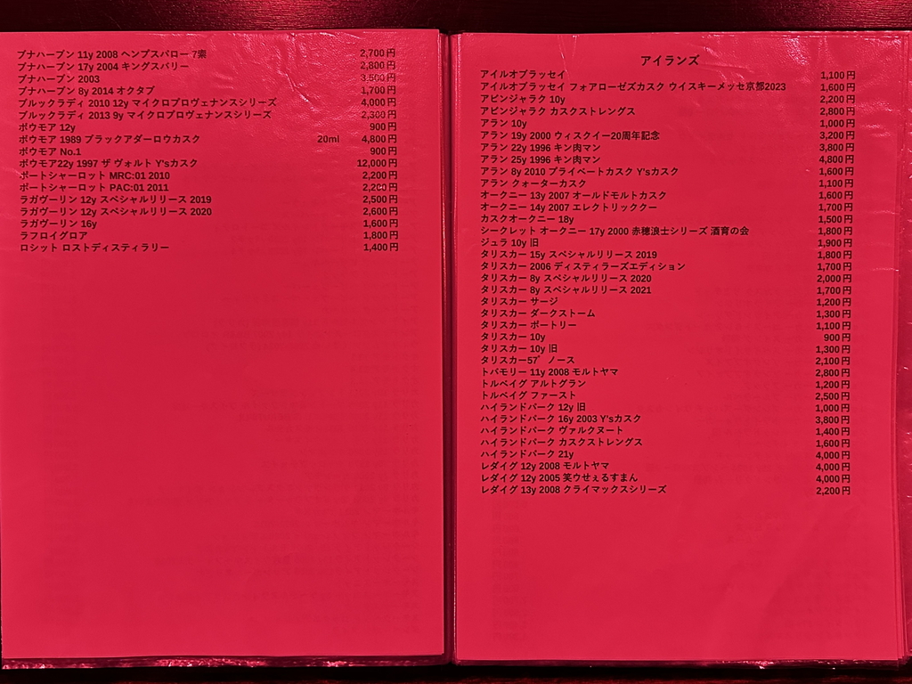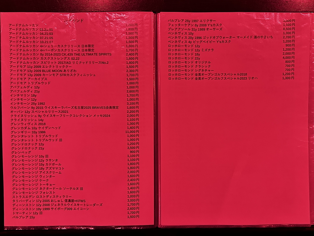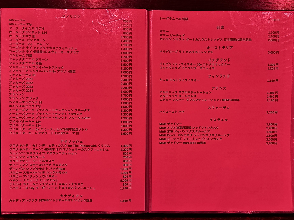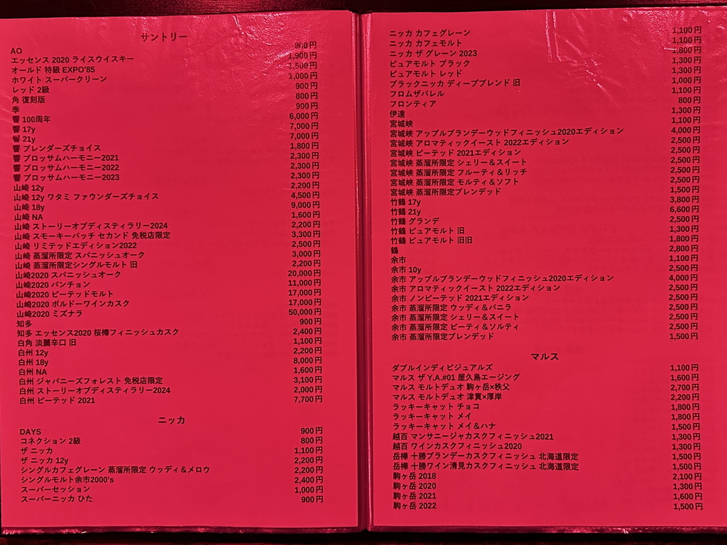 他で飲むとちょっと手が出ないほどの価格のプレミアムなウイスキーでもとても良心的な価格で飲ませていただけ、フードも充実しているので使い勝手抜群のお店です!