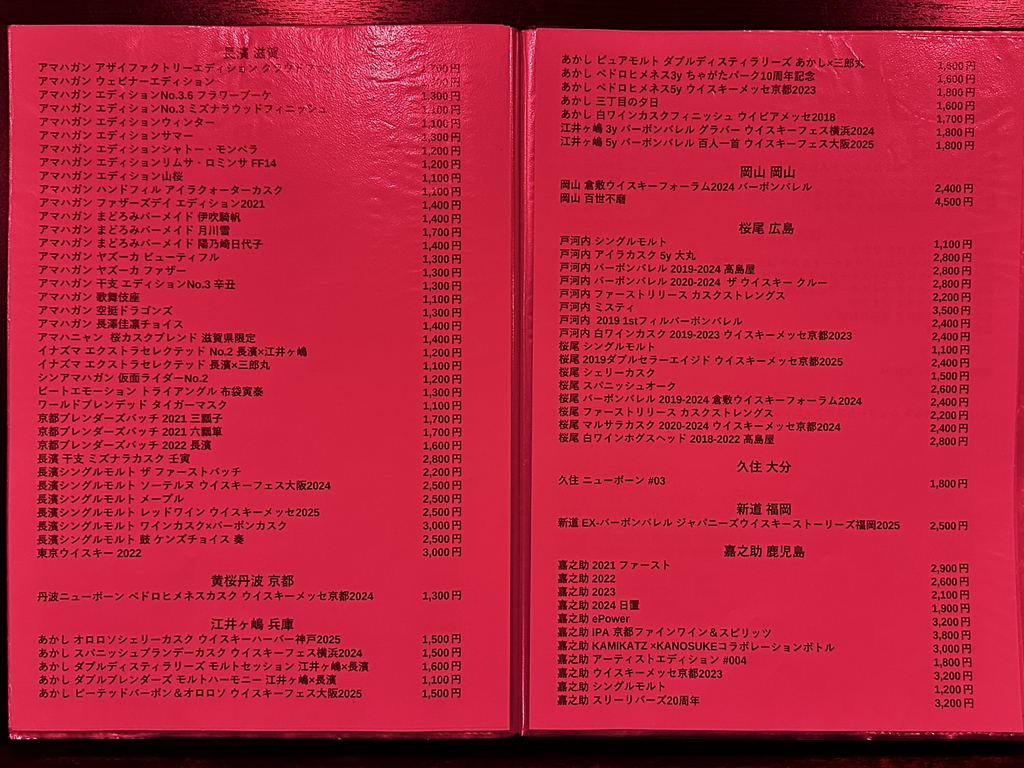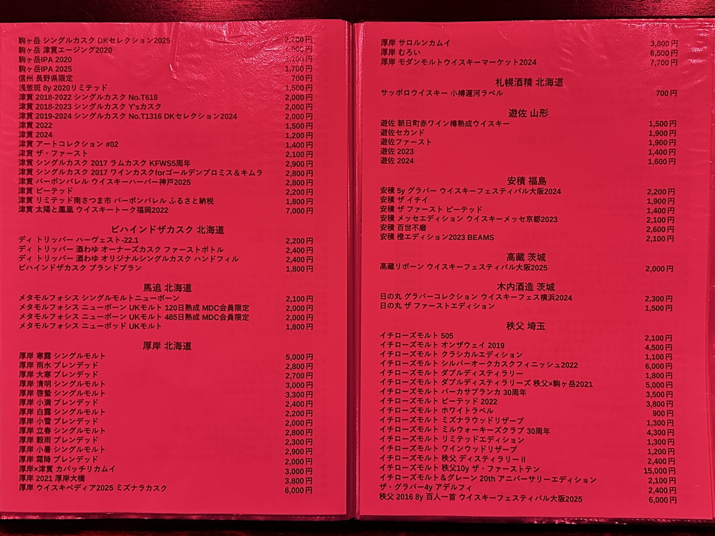 ウイスキーを中心とするメニューの種類がめちゃくちゃたくさん揃っています!