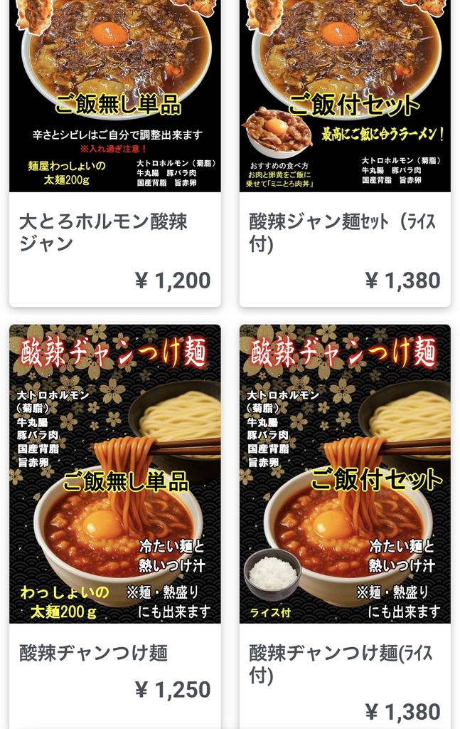 その40・・・大とろホルモン 酸辣ヂャン麺セット