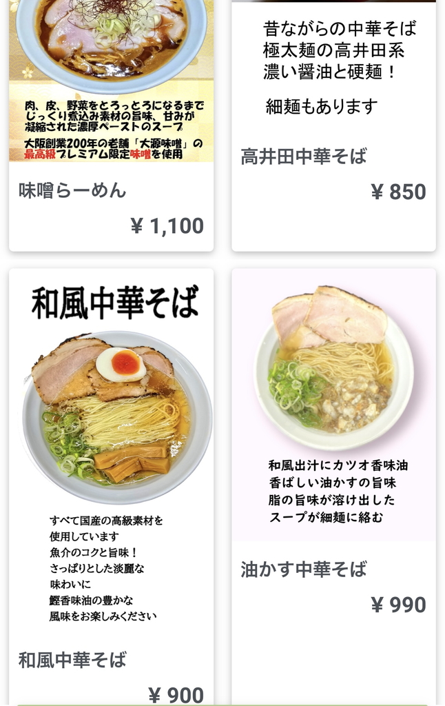 その1・・・鶏そば、ローストポーク増し、鶏のたたき増し、ローストポーク丼、とろとろ桃のかき氷 レアチーズソース