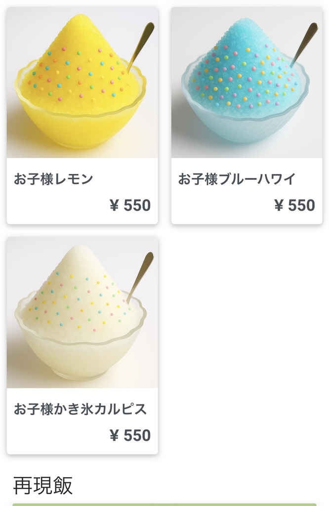 その11・・・カルボナ・ライス・ローストビーフ、マスカルポーネ・ティラミスかき氷、ずんだクリームチーズ