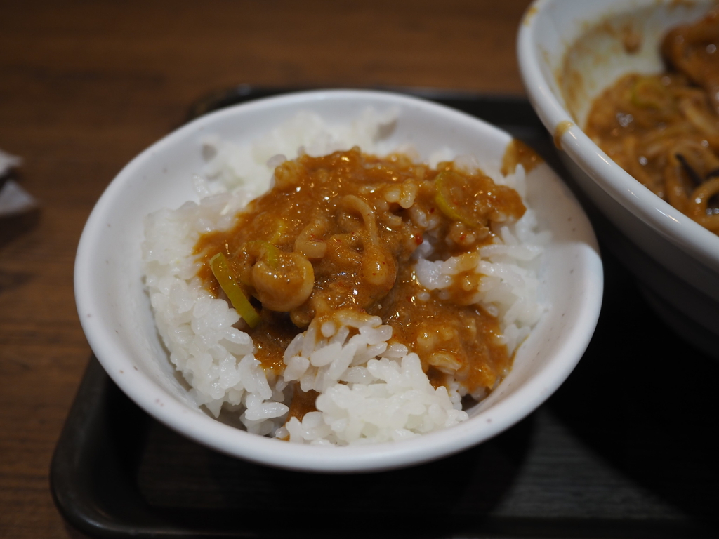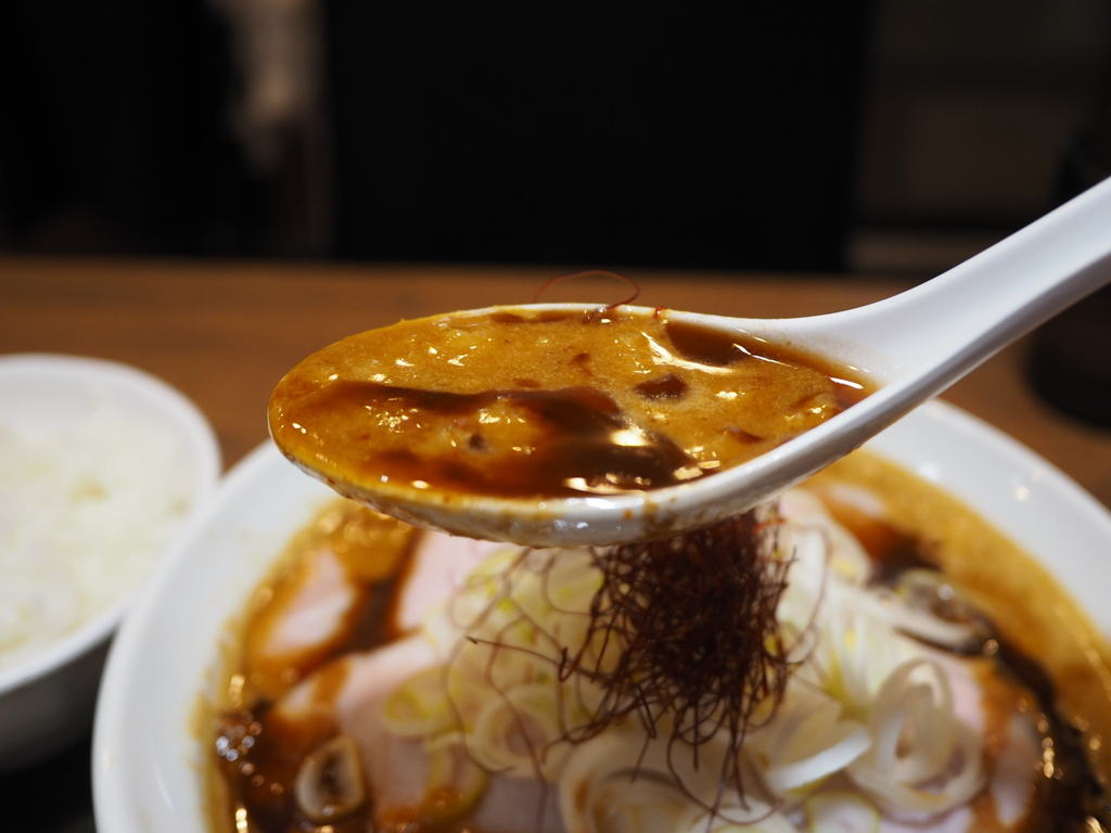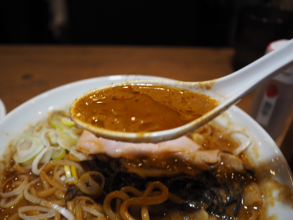 動物系の旨みと野菜の甘みに高級感溢れる味わいの濃厚な味噌が一体となり、黒マー油の香ばしさが合わさってめちゃくちゃ旨い!