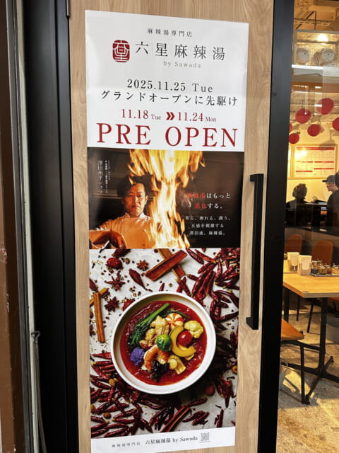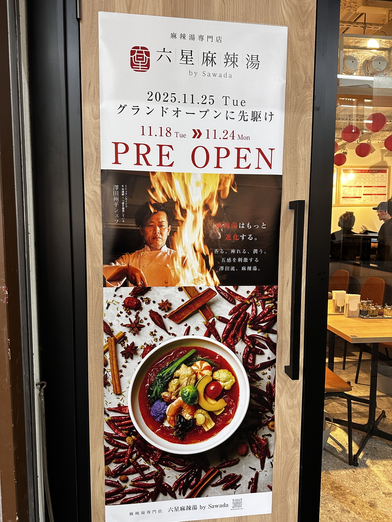 本日のランチは梅田に2025年11月25日グランドオープン予定の麻辣湯専門店「六星麻辣湯(リュウシンマーラータン) by Sawada」に行きました。