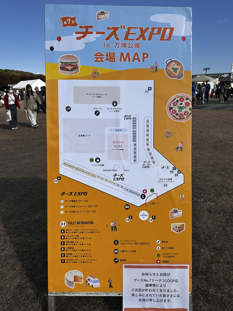 本日のランチは昨日から万博記念公園東の広場で開催されている「第7回チーズEXPO in 万博公園」に行きました。