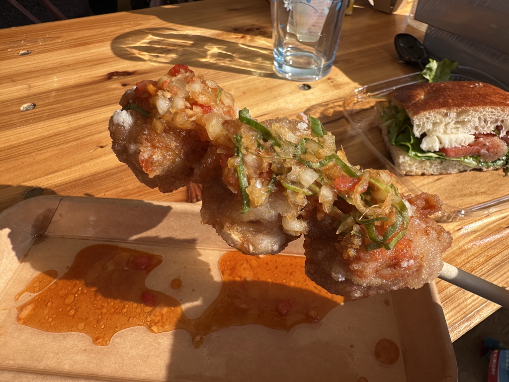 プリプリの唐揚げに甘酸っぱくて旨みたっぷりのソースが絡んで美味しいです!