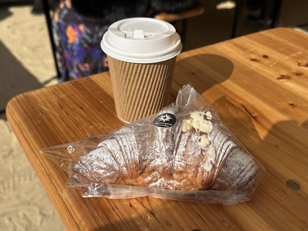 「ブーランジェリー リュミエール」の「シュークロワッサン」(500円税込)と「ホットコーヒー」(300円税込)