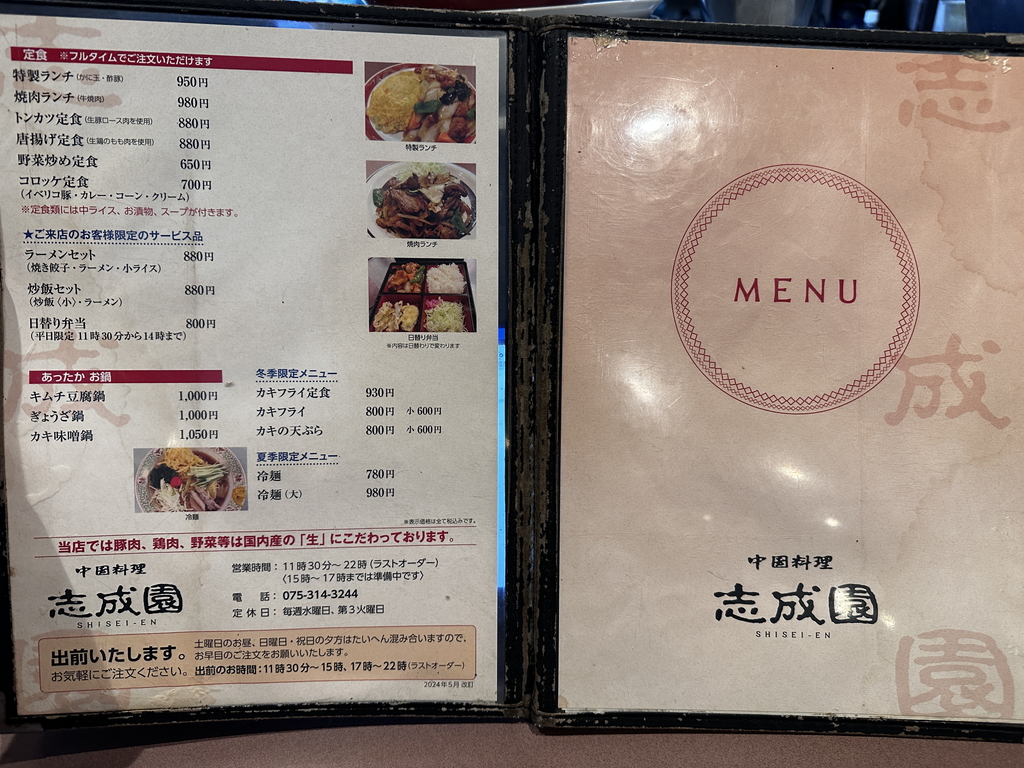 本日のランチは京都市下京区にある中華料理のお店「志成園」に行きました。