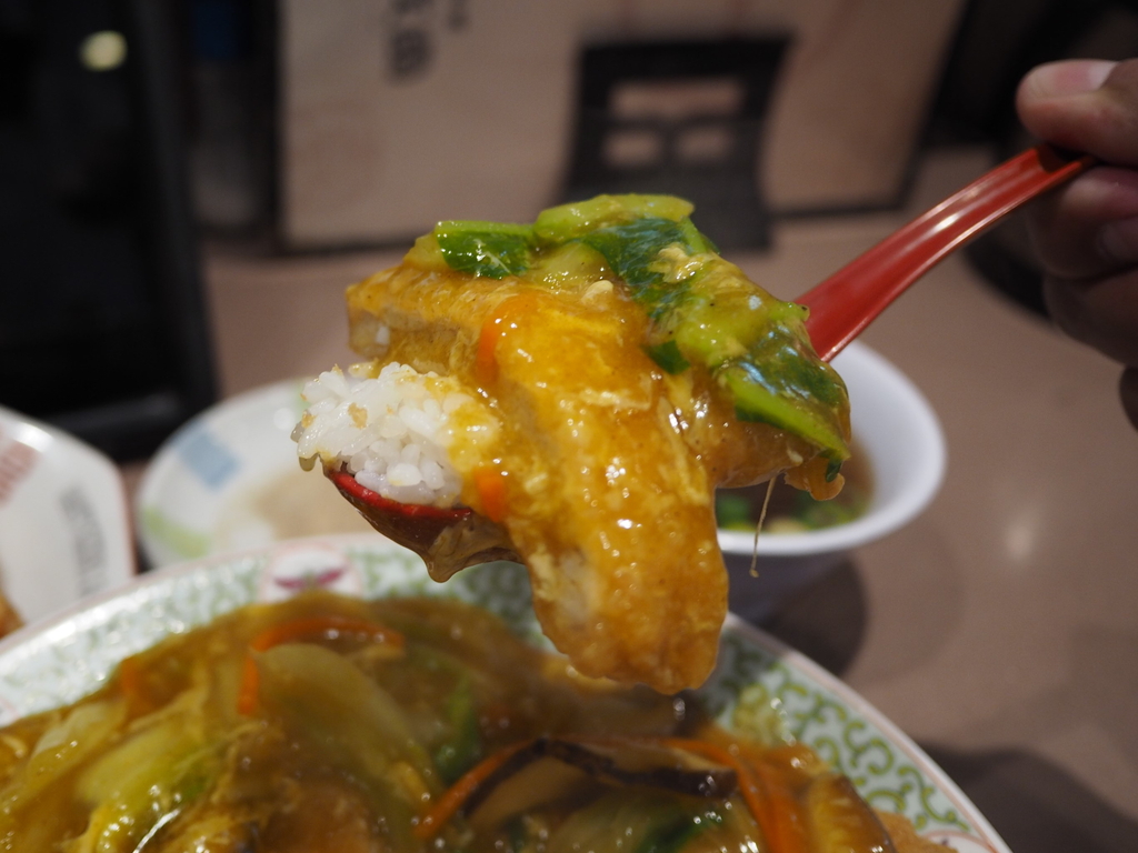 ベースのスープの旨み、カレーの効き具合、塩分濃度など全て絶妙な餡が柔らかくてジューシーなとんかつに絡んでめちゃくちゃ旨い!
