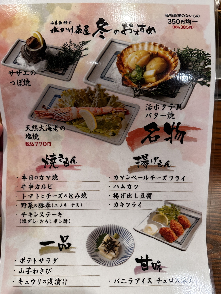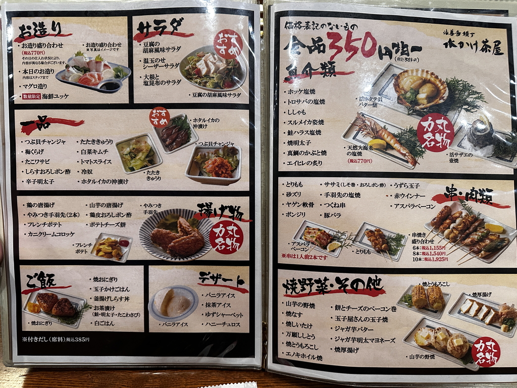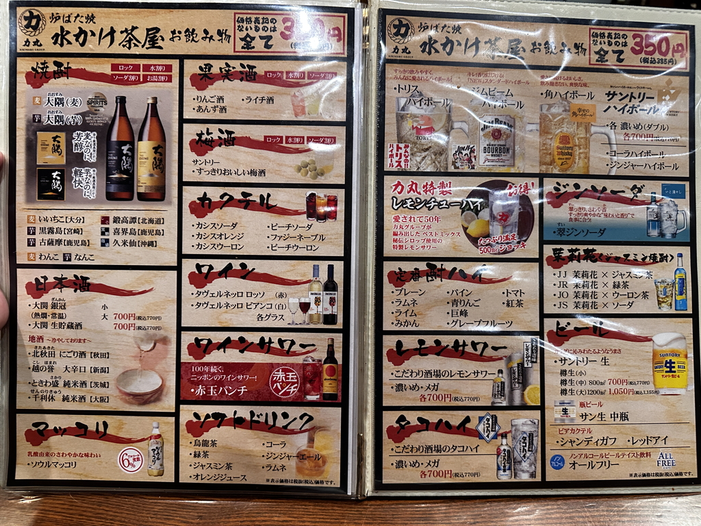 ほぼ全品350円(税込385円)均一の力丸グループのお店炉ばた焼 水かけ茶屋」があるのは知る人ぞ知るところです。