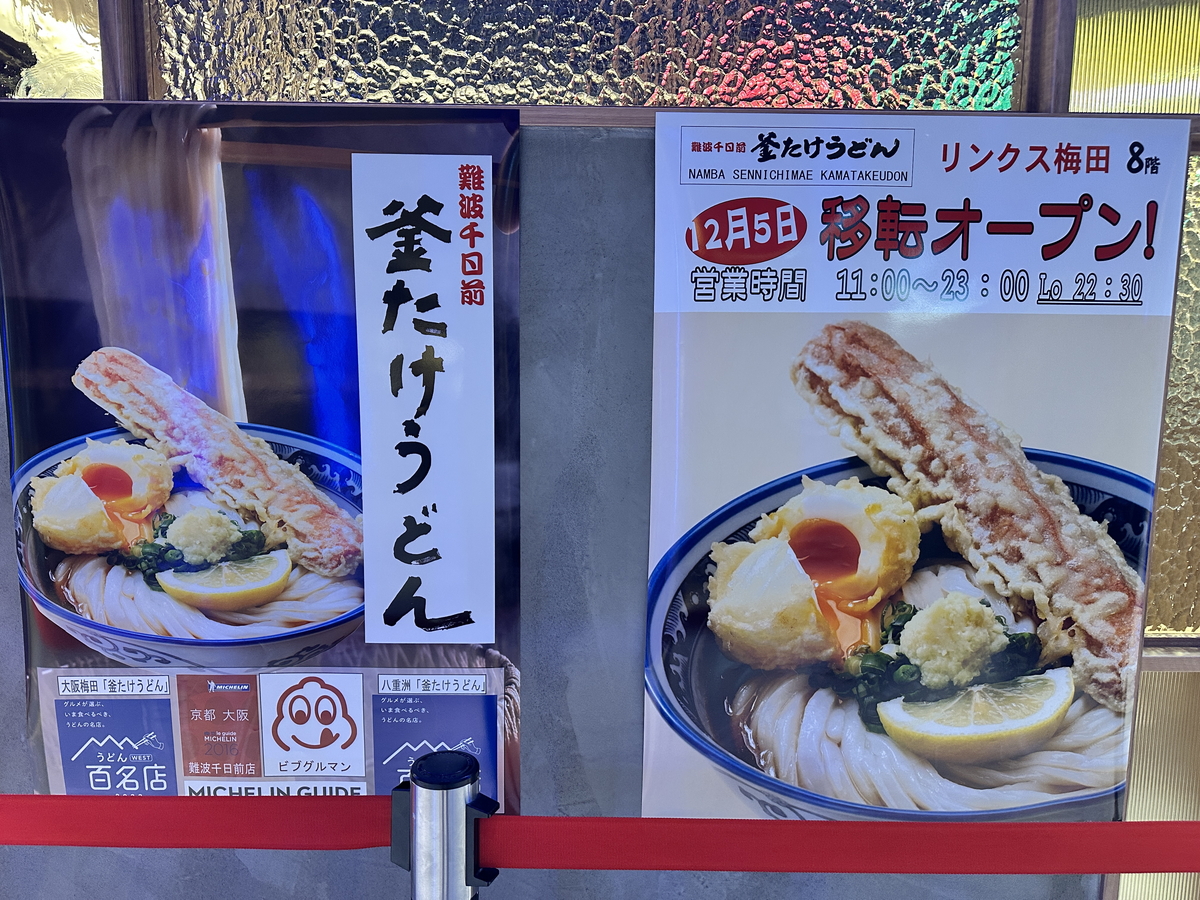大人気うどん店が地下から8階に移転リニューアルオープンします! リンクス梅田 「難波千日前 釜たけうどん リンクス梅田店」