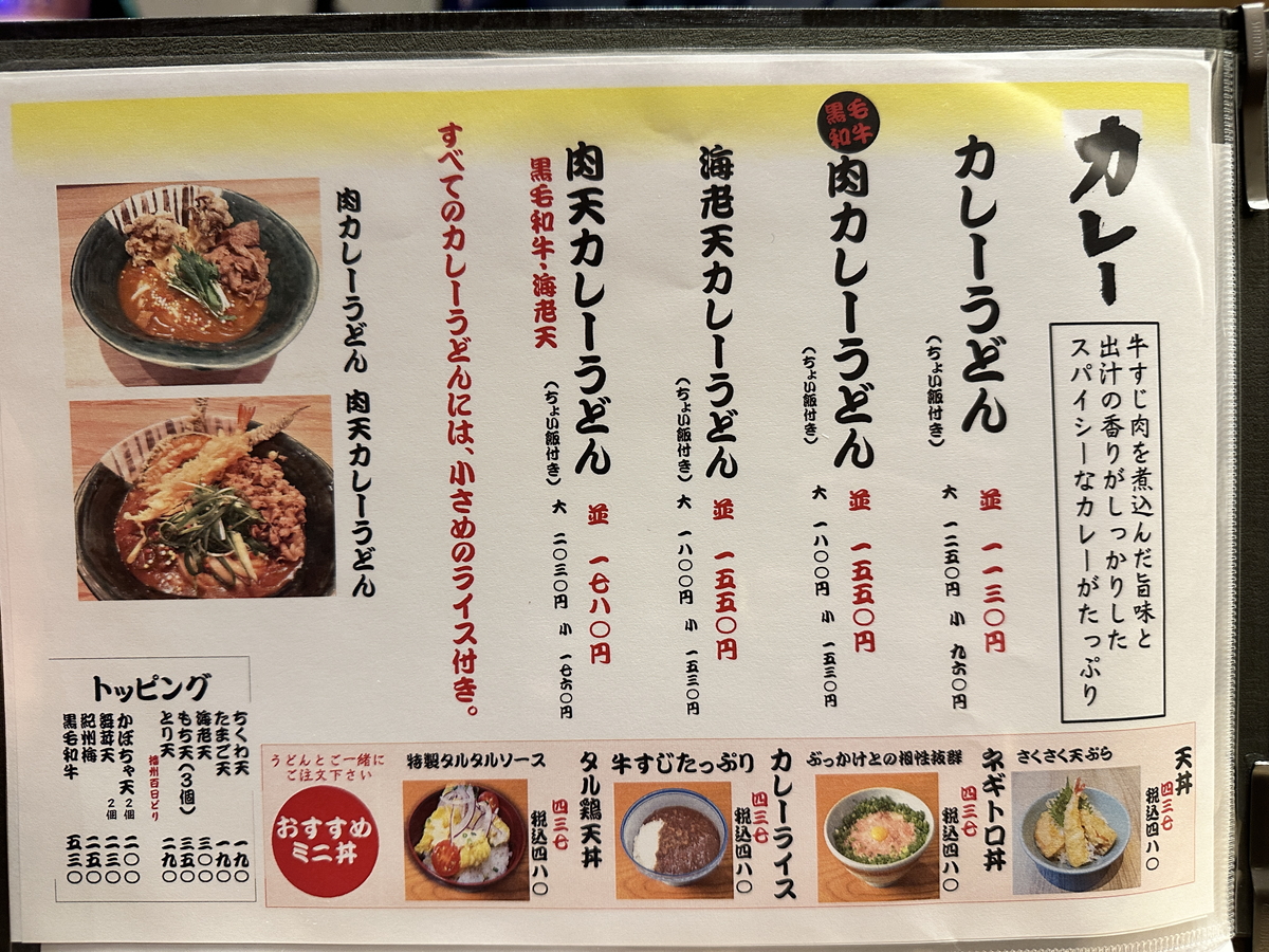 全てのカレーうどんに「小ライス」が付くのは嬉しいですね!