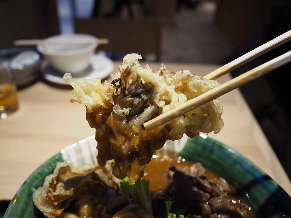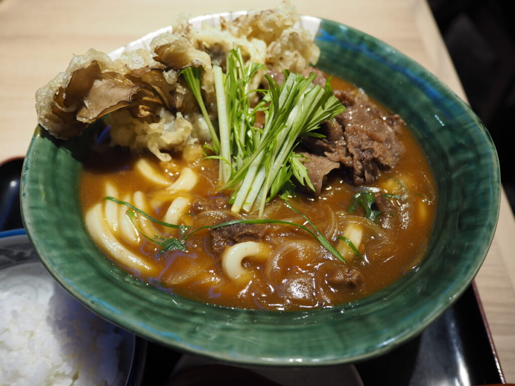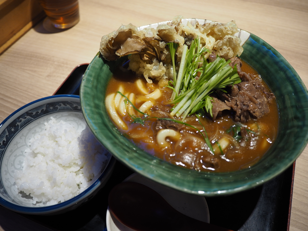 肉カレーうどん」(1,550円税込)、「舞茸天トッピング」(220円税込)