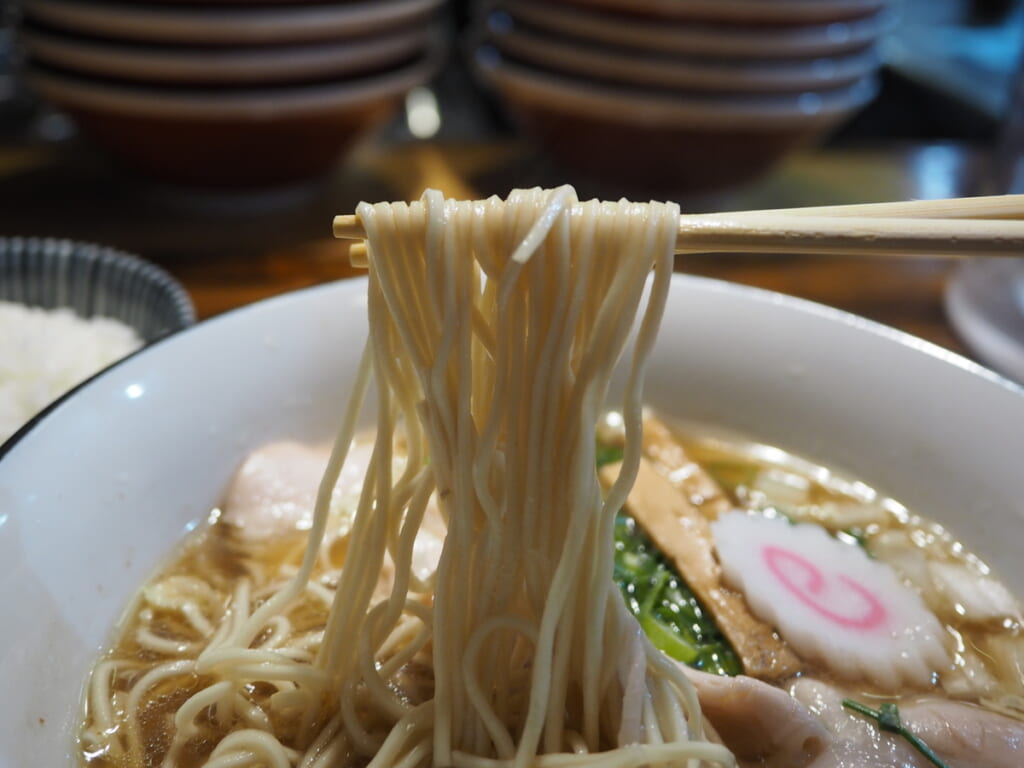 香ばしい風味の麺にスープがしっかり絡んで旨い!