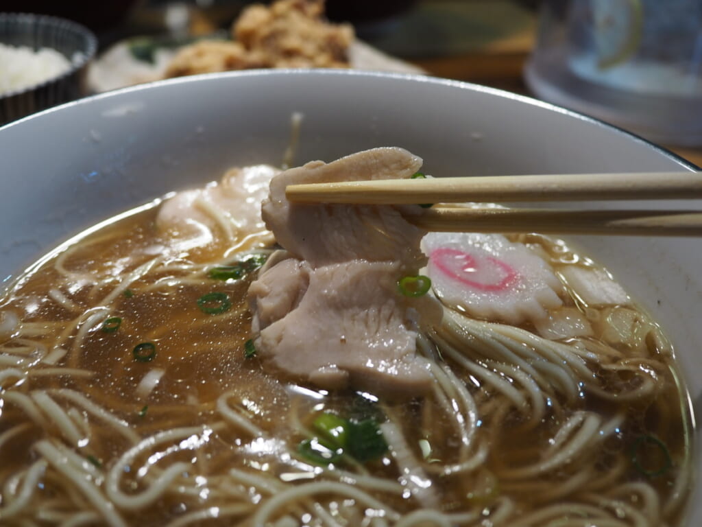「醤油煮干しそば」(750円税込)、「唐揚げライスセット」(+350円税込)