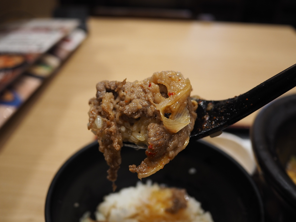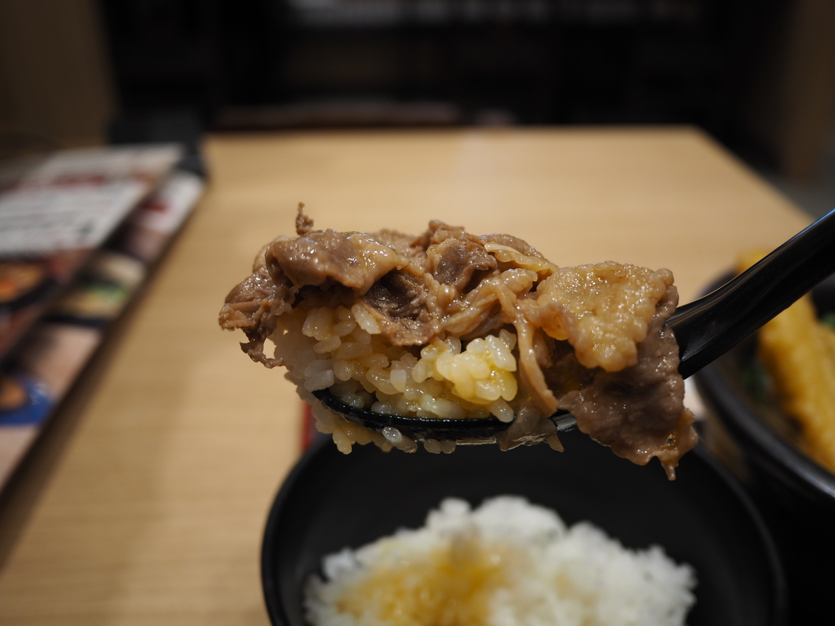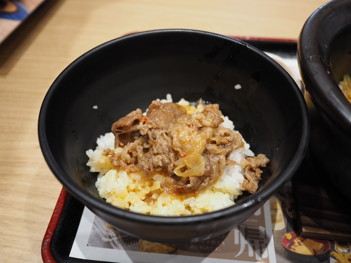 最後はお肉と残った溶き卵を全部ご飯にかけて・・・